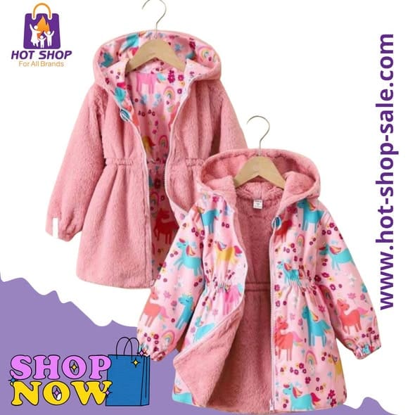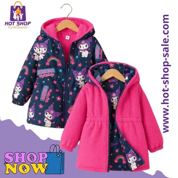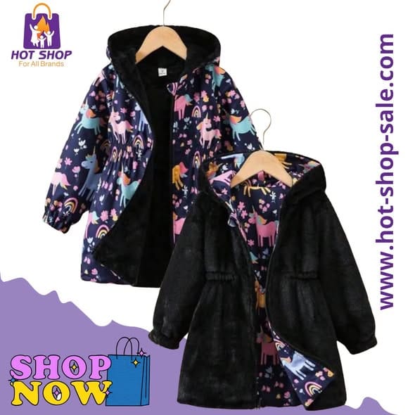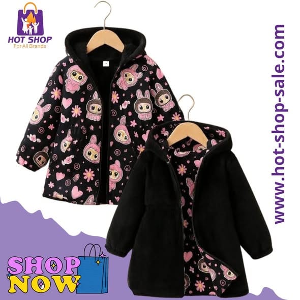 خامة: خامة فرو داخلية دافئة + قماش مطبوع خارجي برسومات ملونة.